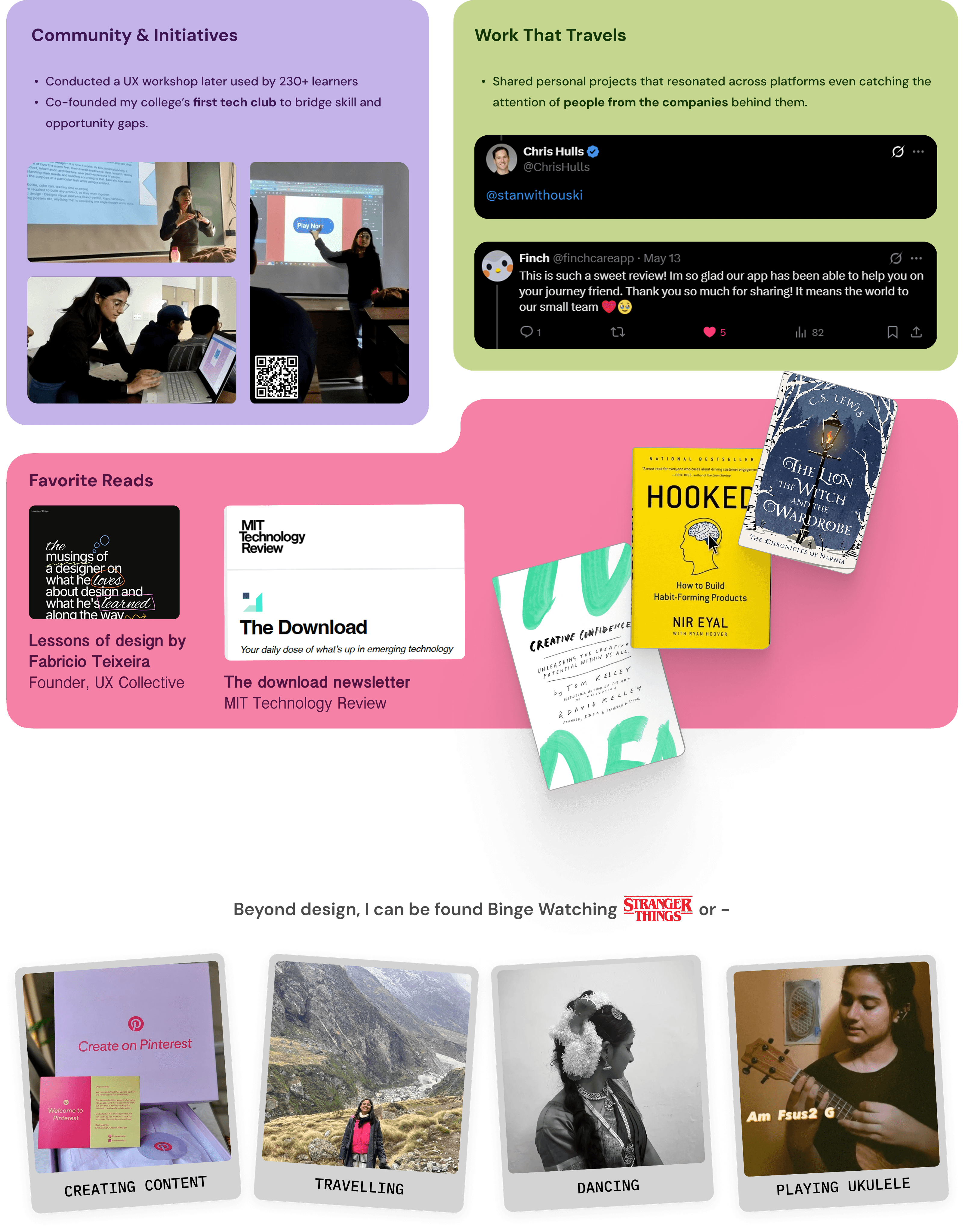 My story began with questions - how do people think, act, and feel around technology? Designing posters for college clubs, and doing audits for digital platforms led me into this world. This curiosity guided me to study Interaction Design at the National Institute of Design, Bengaluru. Moving from Electronics to design taught me how systems and empathy can coexist.